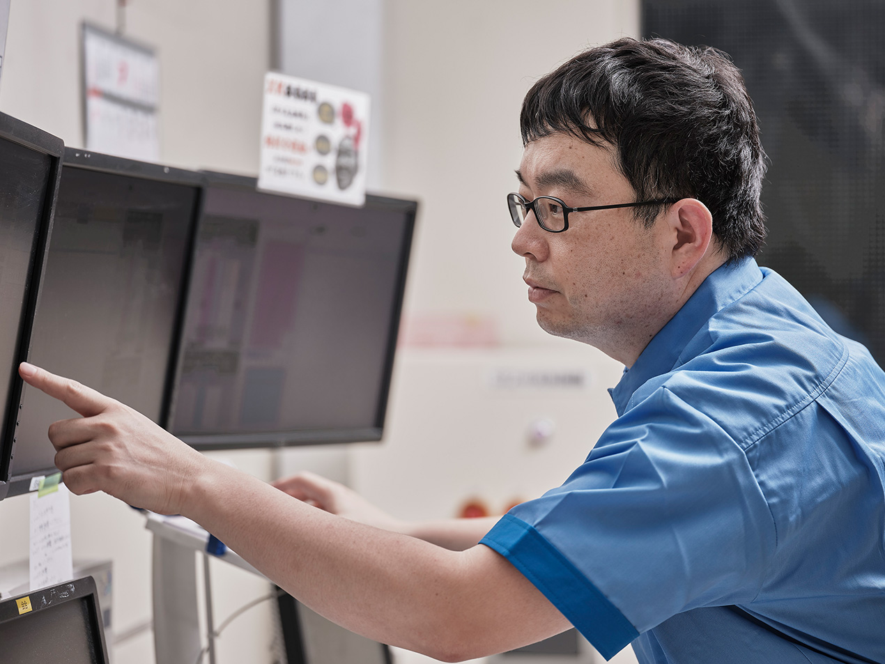 仕事全般、誇りを持ってやってはいますが、その中でも最も心がけているのはトラブルや故障で生産が止まってしまわないように、日々いろいろな事象を監視して、トラブルを未然に防ぐことです。例えばこの設備が最近調子がおかしいねと気づいたら、故障が起きる手前で修理もしくはメンテナンスを入れる。条件についても、まず規格を逸脱する恐れがあると判断した際は生産、条件を即座に見直すことで異常発生を未然に防ぐようにしています。今思うと、入社当時は不具合などの原因について調べても、やはり深堀りできていなかったですね。経験を積むうちに、徐々に原因についてもっと深く掘り下げて考え、根本原因を調査して対策を図ることができるようになりました。