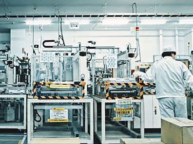 原材料の投入から、製品の完成まで、ほぼ人の手を介すことなく作り上げることが可能な製造ラインです。各種生産データも自動で収集することができます。