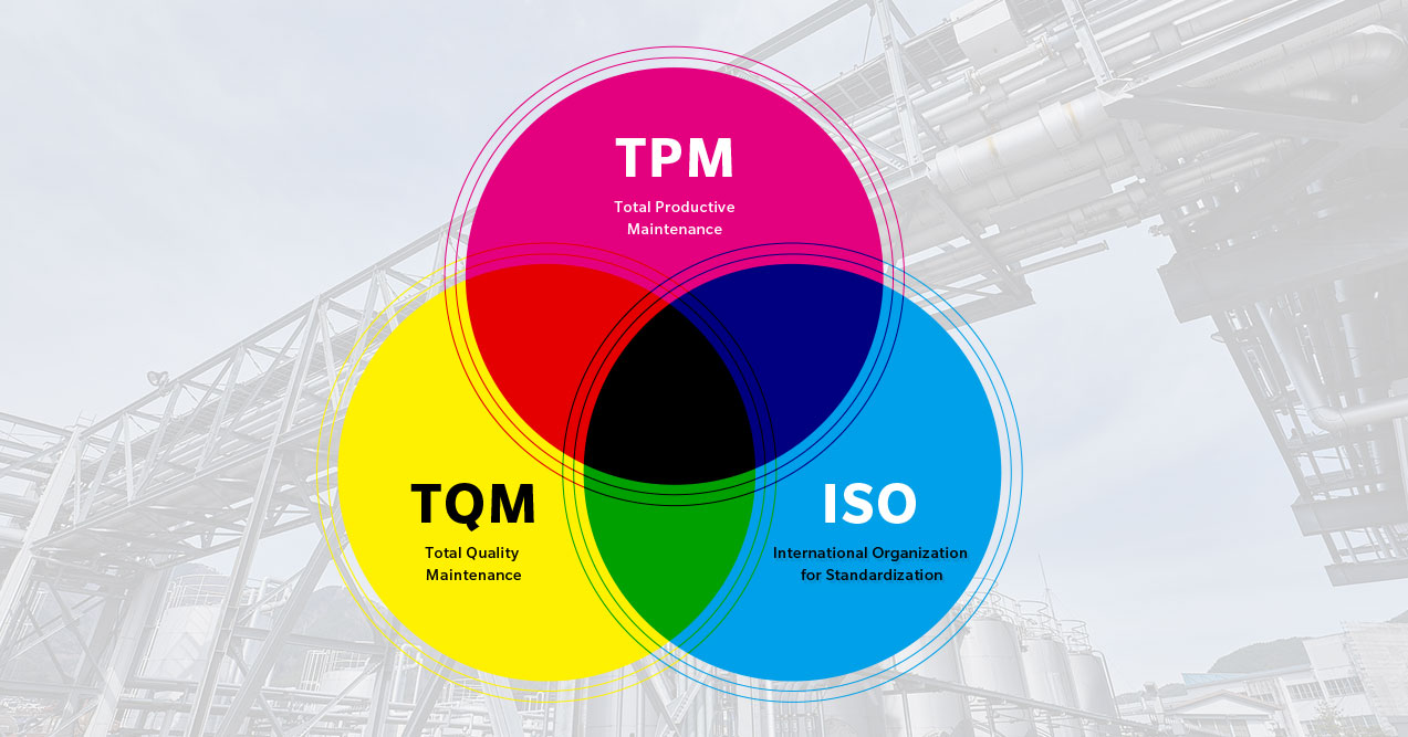 コニカミノルタサプライズでは生産革新のため、全員参加のTPM(Total Productive Maintenance)を基盤にTQM(Total Quality Maintenance)、ISO(International Organization for Standardization)を融合させた活動を展開しています。